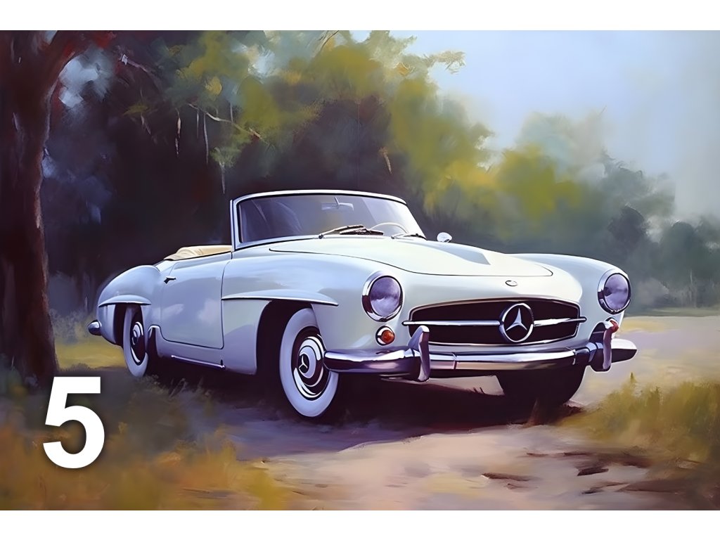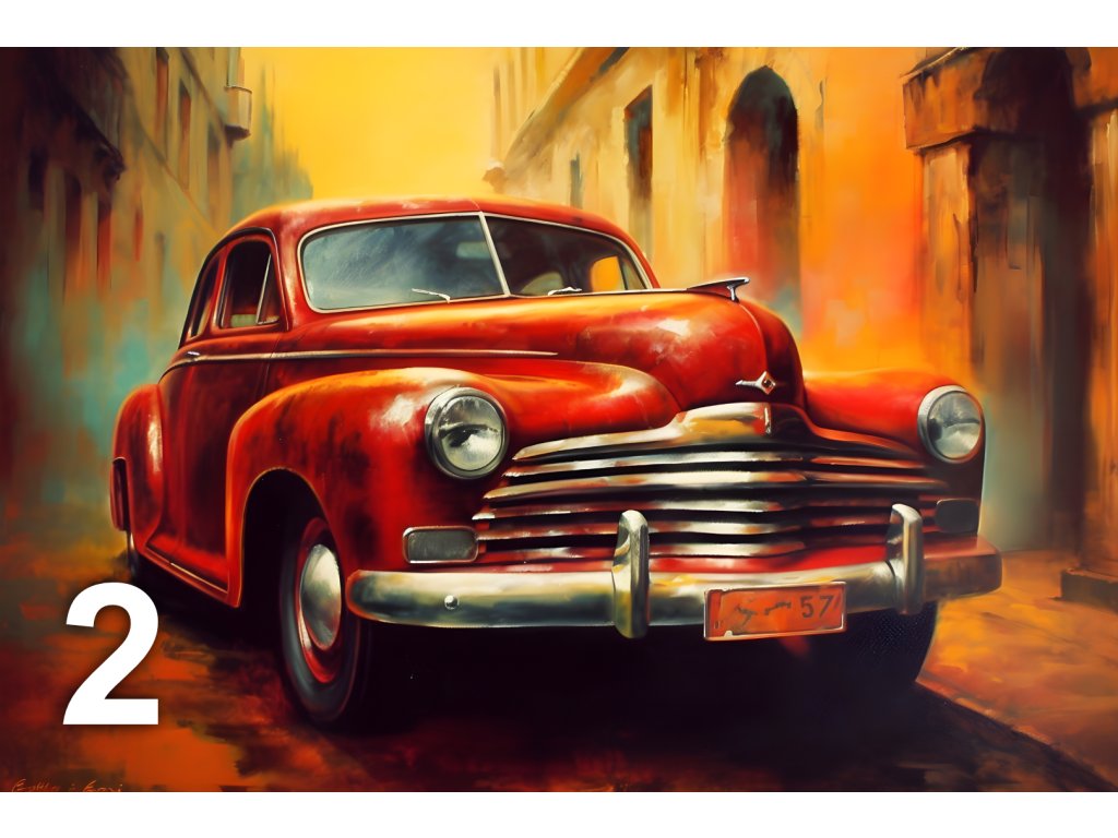 Rozjeďte svou vášeň pro automobily na plný plyn s tímto stylovým tiskovým produktem! Nabízíme vám jedinečné umělecké ztvárnění různých typů aut - od starých klasik až po nové, luxusní a sportovní modely. Tyto originální malby představují vozidla v nejrůznějších situacích a prostředích, což dodává každému kusu osobitý charakter.
